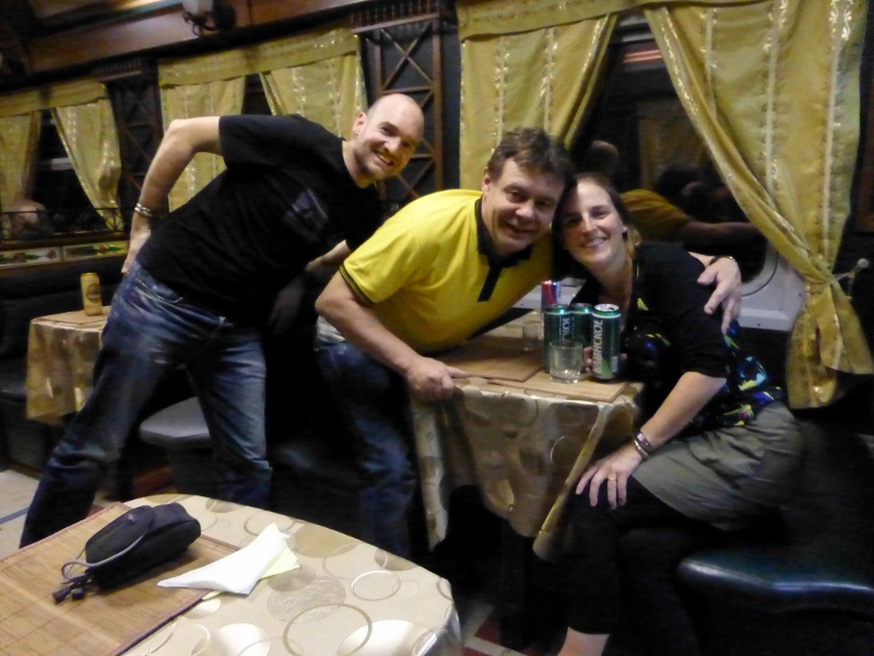 After an hour of playing the card game UNO and working our way through another third of a bottle of vodka we were contemplating what to do when Jean-Francois knocked on the door and invited us down to the dining carriage for a beer. How could we say no?